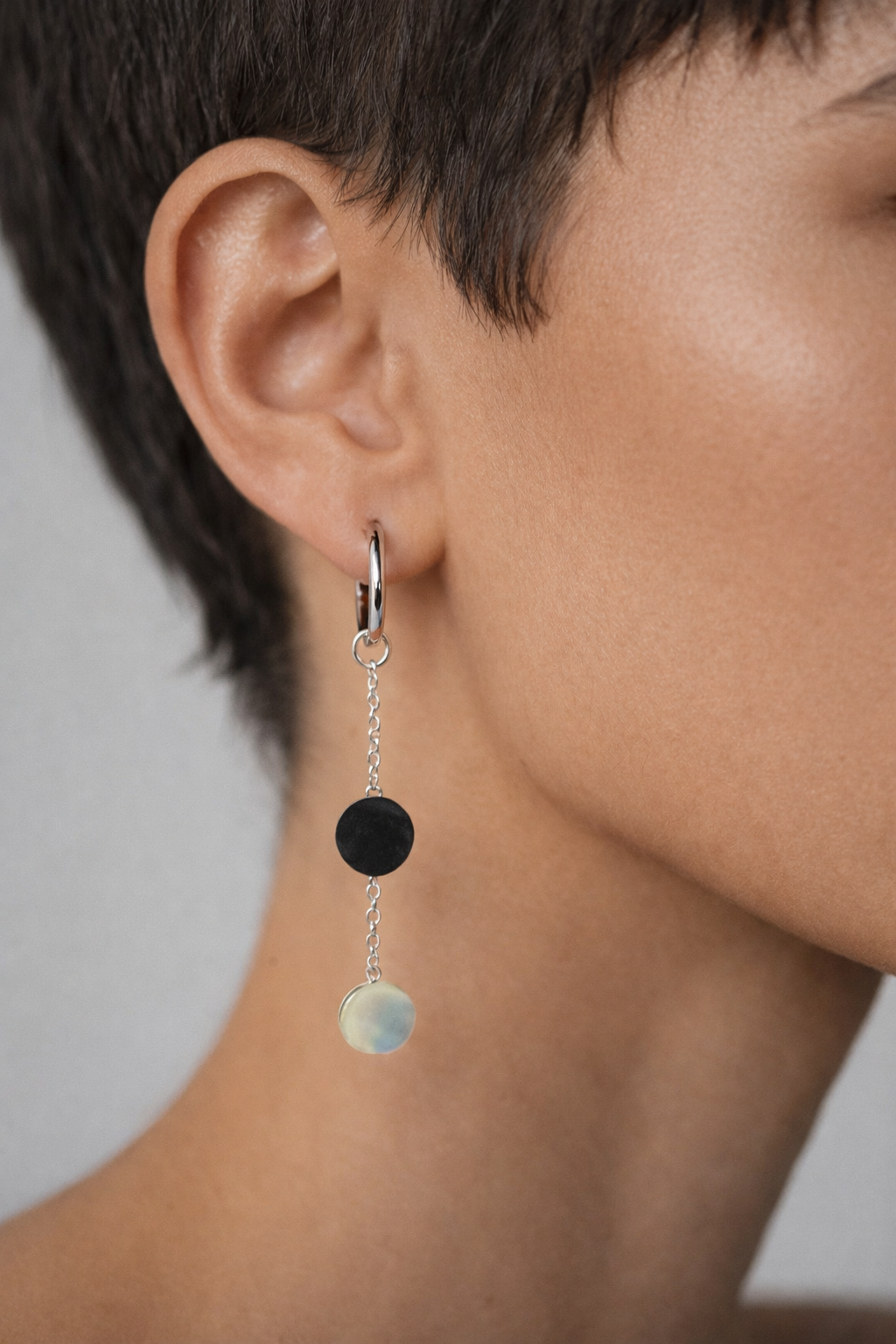 A versatile design where the chain can be remove from the ear ring, allowing the rings to be worn on their own or together with the chain for a statement look. Inspired by the ever-changing shoreline, these earrings reflect shimmering ocean hues with every movement. Choose between Malaysian pearls, soft blue Swedish mussel shell or oysters.