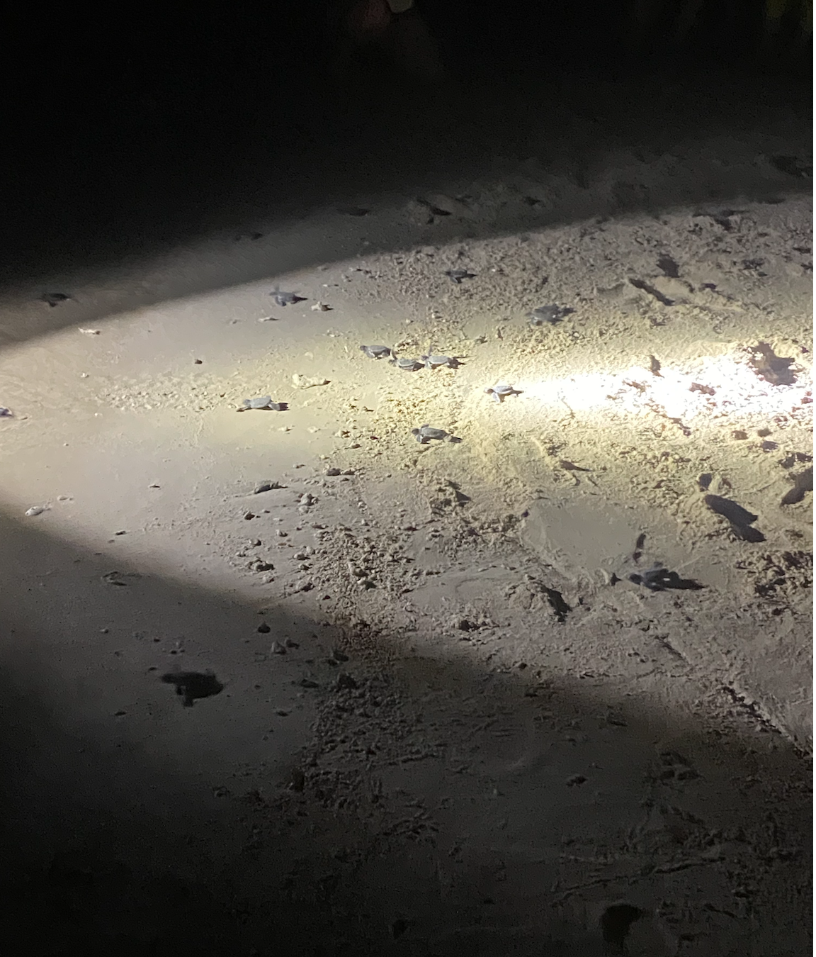 Baby turtles on Turtle Island, Malaysia, are released into the ocean as they make their way toward the water. It is crucial that the turtles are released at night, as the darkness provides protection from predators. The turtles are carefully placed a few meters from the sea, with torches illuminating their path toward the ocean. Turtles possess an innate ability to remember the beach where they first entered the sea. Therefore, it is essential to release them at the same beach, allowing their internal navigation systems to activate. The ultimate goal is that, as adults, these turtles will return to the same beach where they were. Turtles nd turtle eggs are protected on the Malaysian sides of Boreno,however this is not the case for the rest of Borneo or neighbouring countries. It is therefore vital for the survival of the spices that they remember where they were born and will come back and lay their eggs under the protection of the island.